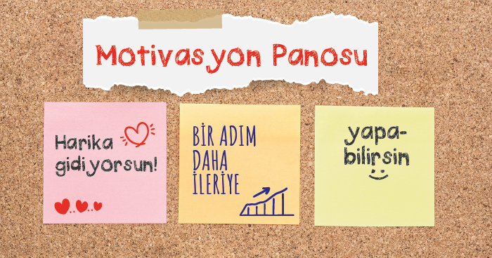 Bir panoya birlikte “Haftalık Hedefler” bölümü oluşturun. Çocuğunuz her günkü hedefini yazsın, siz de gün sonunda tamamlanan hedeflerin yanına küçük bir motivasyon notu ekleyin. Örneğin “Harika gidiyorsun!”, “Bir adım daha ileriye!” gibi ifadeler, onun için güçlü bir destek olacaktır. Çocuğunuzun yanında bir destekçi, yol gösterici ve en önemlisi güven kaynağı olmanız, onların başarısının en temel anahtarıdır.