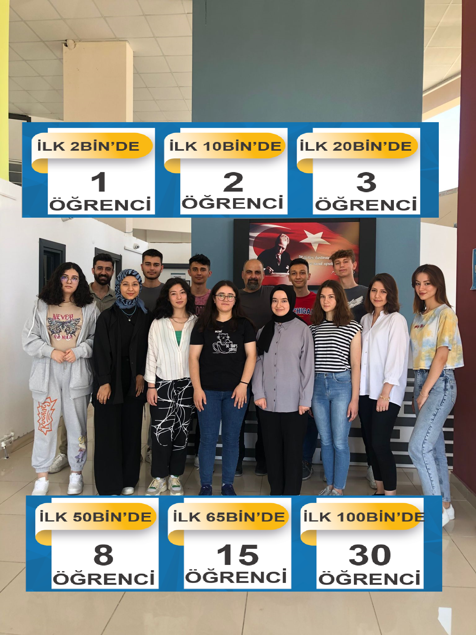 19 Ağustos’ta yayınlanan 2023 YKS Yerleştirme sonuçlarına göre kursumuzdan toplam 70 öğrencimiz üniversiteye yerleşti ve Tosya’da ilk kez bir özel eğitim kurumu tarafından bu kadar yüksek sayıda öğrenci üniversiteye yerleştirilmiş oldu.
