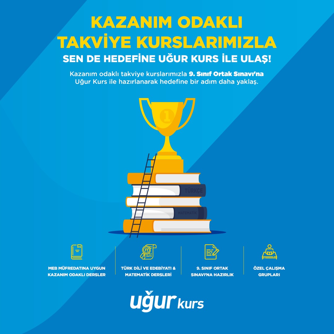 Milli Eğitim Bakanlığı’nın yeni düzenlemesine göre 6. sınıflarda Türkçe-Matematik, 9. sınıflarda da Türk Dili ve Edebiyatı-Matematik derslerinden Türkiye genelinde ortak sınav yapılacak. Öğrenciler ise ilk kez böyle bir uygulamaya girecekleri için nasıl bir sınavla karşılaşacakları konusunda belirsizlik yaşamakta, bu sınavlara nasıl hazırlanacakları konusunda da yardıma ihtiyaç duymakta. Uğur Kurs’ta ise bu sınavlara yönelik öğrenciler için kazanım odaklı takviye kursları başladı. Öğrenciler Uğur Kurs’taki kazanım odaklı takviye kursları ile ortak sınavlara yönelik eğitim içeriklerine ulaşabilecekler ve MEB kazanımlarına yönelik anlatımlar ile ortak sınavlarda sorulacak sorulara donanımlı olarak hazırlanabilecekler.